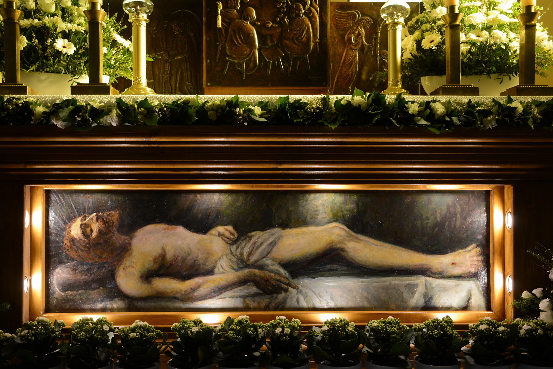 Nagycsütörtök este a nap egyetlen szentmiséjén az Utolsó vacsorára emlékezünk, sőt meg is jelenítjük azt. Az este teljes fényben, orgonaszóval kezdődik, de az már a Dicsőség intonálása után elhallgat, elnémulnak a harangok, a csengők, helyüket komor kereplők veszik át. Az evangélium a lábmosásról számol be, amit át is élhetünk. Az esti szentmise végén az Oltáriszentséget őrzési helyére (templomunkban a Szent Imre oltár tabernákulumába) viszik, majd minden díszétől megfosztják az oltárt, s a sötétben maradt szentélyt néma csendben hagyja el a pap és az asszisztencia. De a szentmise végén nem sietünk haza, meghallgatjuk Jézus búcsúbeszédét, majd 9 órakor virrasztó zsolozsmára, a Jeremiás siralmait is megszólaltató Lamentációra gyűlünk ismét a templomba.